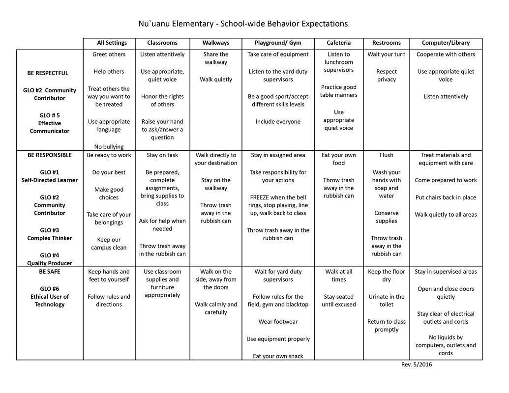 School Wide Behavioral Expectations